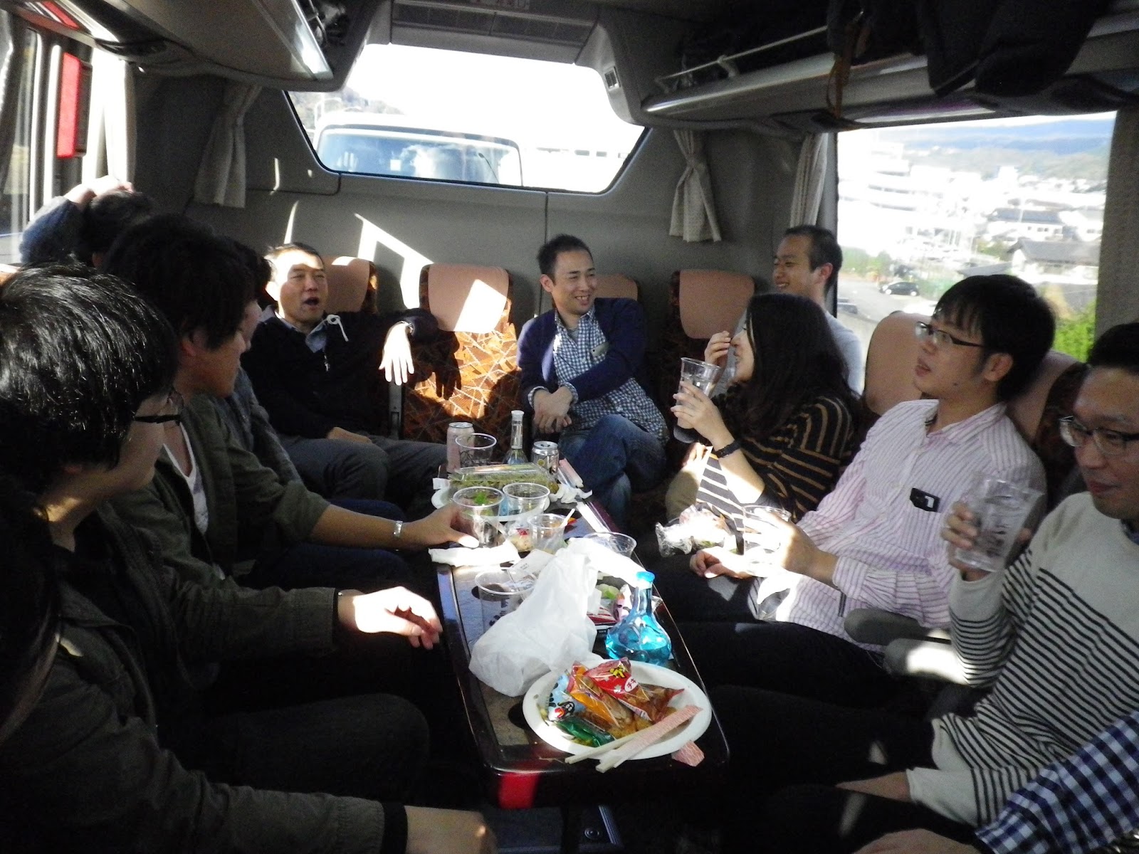 移動中、バスの中ではお酒を飲んで盛り上がって…