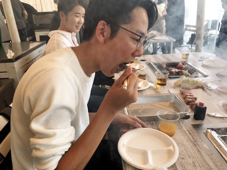 BBQでは社長、尾崎取締役、☆部長から、なんと A5 肉の差し入れが…!