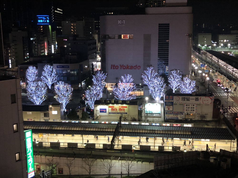大井町駅前のイルミネーションは下から見上げても綺麗なのでおすすめです。