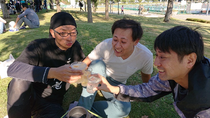 走った後にはお互いの健闘を称えつつお酒を嗜みます。