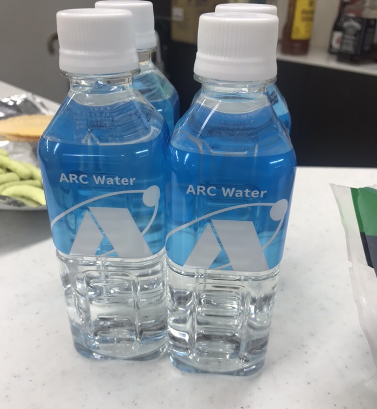 中身は普通のミネラルウォーターですが、ラベルに当社のロゴが